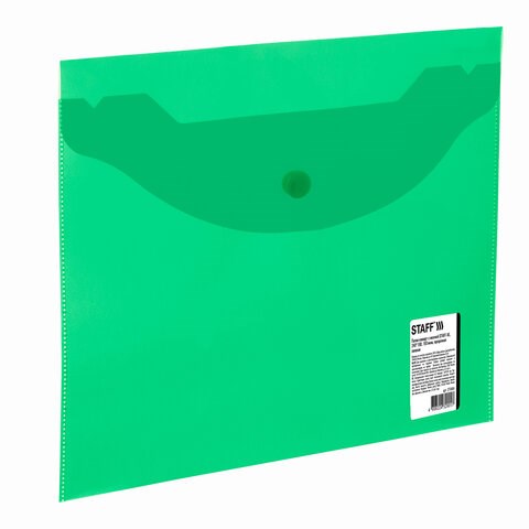 Папка-конверт с кнопкой МАЛОГО ФОРМАТА (240х190 мм), А5, прозрачная, зеленая, 0,15 мм, STAFF, 270464