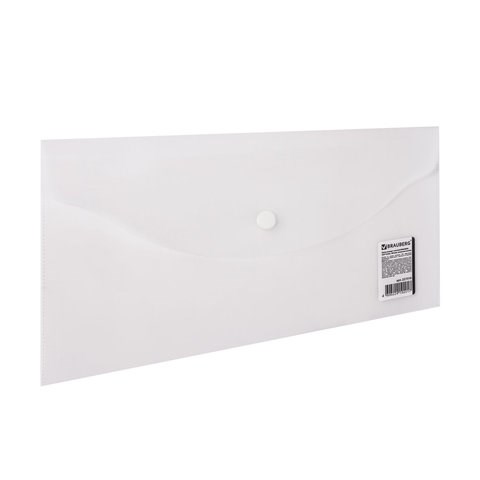 Папка-конверт с кнопкой МАЛОГО ФОРМАТА (250х135 мм), матовая прозрачная, 0,18 мм, BRAUBERG, 227316