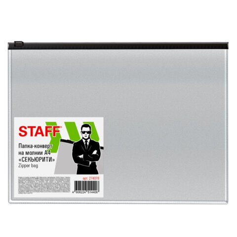 Папка-конверт СЕКЬЮРИТИ на молнии А4 (230х333 мм), ПВХ, непрозрачная, серая, STAFF, 274078