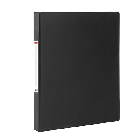 Папка стандартного формата А4 вмещает до 180 листов. Изготовлена из плотного картона с покрытием ПВХ толщиной 2 мм. Внутренняя сторона обложки снабжена карманом. Для идентификации содержимого на папке имеется сменный бумажный корешок. Ширина корешка составляет 35 мм. Папка оснащена двумя кольцами O-образной формы, которые обеспечивают надежное хранение документов. В неё можно вставить файлы или проколотые дыроколом документы. Допускается влажная обработка поверхности. Каждая папка упакована в индивидуальный пакет.