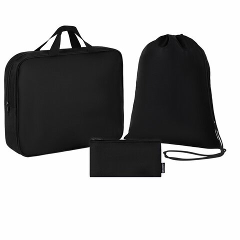 Папка на молнии с ручками А4, мешок для обуви 42х33 см, пенал 20х10 см, черный, НАБОР BRAUBERG, 273288