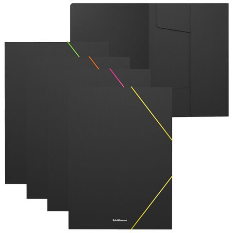 Цвет папки - черный; цвет резинок - ассорти: желтый, зеленый, оранжевый, розовый.
