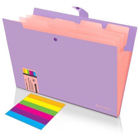 Папка-органайзер на кнопке 5 отделений, BRAUBERG "Extra", А4, лиловая с персиковым, 274098