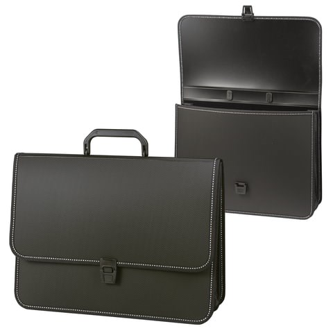Папка-портфель пластиковая BRAUBERG "КОНСУЛ" А4 (370х280х120 мм), 2 отделения, фактура "бисер", черная, 223079