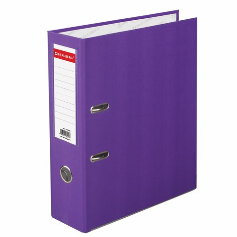 Папка-регистратор BRAUBERG с покрытием из ПВХ, 80 мм, с уголком, фиолетовая (удвоенный срок службы), 227200