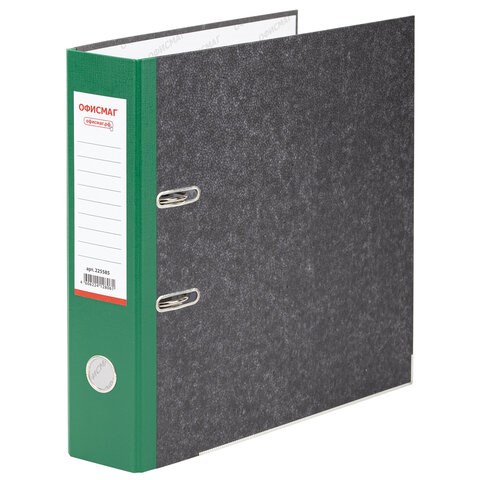 Папка-регистратор ОФИСМАГ, фактура стандарт, с мраморным покрытием, 75 мм, зеленый корешок, 225585