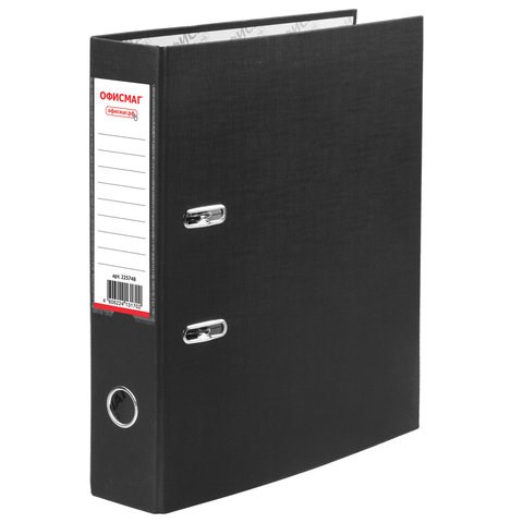 Папка-регистратор ОФИСМАГ с арочным механизмом, покрытие из ПВХ, 75 мм, черная, 225748