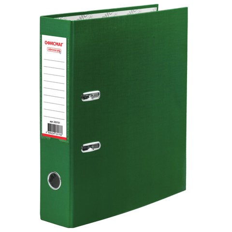 Папка-регистратор ОФИСМАГ с арочным механизмом, покрытие из ПВХ, 75 мм, зеленая, 225751