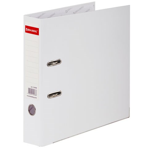 Папка-регистратор, покрытие пластик, 75 мм, ПРОЧНАЯ, с уголком, BRAUBERG, белая, 226600