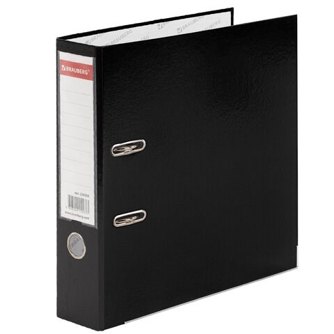 Папка формата А4 с вертикальной ориентацией изготовлена из плотного картона, ламинированного черной пленкой из полипропилена, который не имеет резкого запаха и отличается долговечностью и морозоустойчивостью. Благодаря такому плотному покрытию допустима влажная уборка изделия. Ширина корешка в 75 мм позволяет разместить до 500 листов. Нижние края папки защищены металлическими уголками, что увеличивает срок службы в 2 раза. Прорези для колец на внешней крышке позволяют оставаться папке закрытой даже при большом количестве бумаг, а надежный арочный механизм легко справляется с ежедневными нагрузками. Корешок снабжен этикеткой для маркировки содержимого, что позволяет структурировать информацию. Такая папка станет незаменимым помощником для работников с документацией, а строгий черный цвет папки-регистратора отлично впишется в офисныйй интерьер.