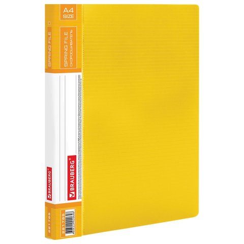 Изготовлена из высококачественного пластика желтого цвета толщиной 0,7 мм с оригинальной линейной фактурой. Обеспечивает хранение до 100 листов формата А4. Металлический скоросшиватель с пружинным механизмом обеспечит надежную фиксацию документов. Кроме того, папка снабжена прозрачным внутренним карманом. Для идентификации имеется сменный бумажный корешок. Поставляется в индивидуальной упаковке.