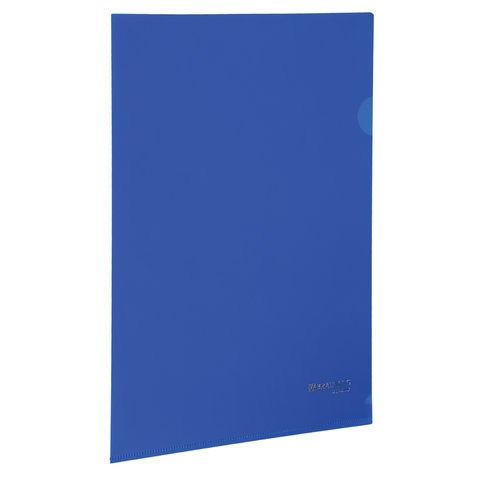 Папка-уголок жесткая, непрозрачная BRAUBERG, синяя, 0,15 мм, 224880