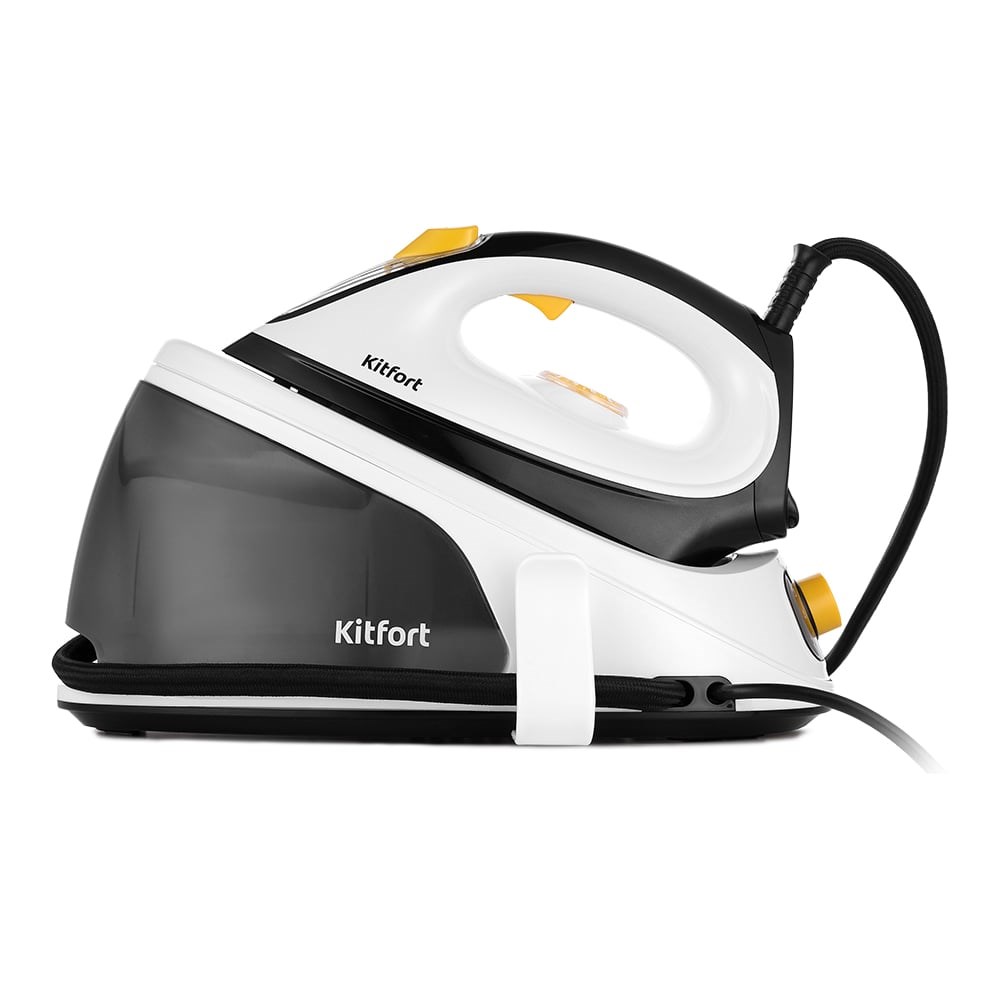Прибор состоит из утюга для глажки и подставки для утюга со съемным резервуаром для воды. Например, если на глажку рубашки и брюк обычным утюгом уходит около 15 минут, то при помощи паровой станции вы справитесь за 5 минут. В отличие от обычных утюгов, где подача пара осуществляется подачей воды на нагретую внутреннюю поверхность подошвы утюга, паровая станция имеет бойлер для предварительного нагрева воды и образования пара. Вода из резервуара прокачивается помпой в бойлер, который находится в корпусе паровой станции. Здесь вода нагревается и испаряется. Затем пар по шлангу поступает в утюг и выходит из отверстий на его подошве. Таким образом, уменьшается количество влаги и капель воды, попадающих на одежду. Отличительная особенность всех паровых станций — это большой резервуар для воды: емкость резервуара в паровой станции КТ-9148 составляет 1,1 л, тогда как в утюгах в среднем 0,3 л. Керамическая подошва хорошо скользит и легко очищается. Такой утюг не сделает затяжек на одежде и лишних складок. Вы можете отпарить занавески и портьеры (для этого их не обязательно снимать), обивку мягкой мебели, матрасы. Также вы можете отпаривать одежду, висящую на плечиках, сушилке для белья или веревке. При этом вы не только разгладите складки, но и освежите вещи, а также продезинфицируете их, так как горячий пар убивает пылевых клещей и другие микроорганизмы.