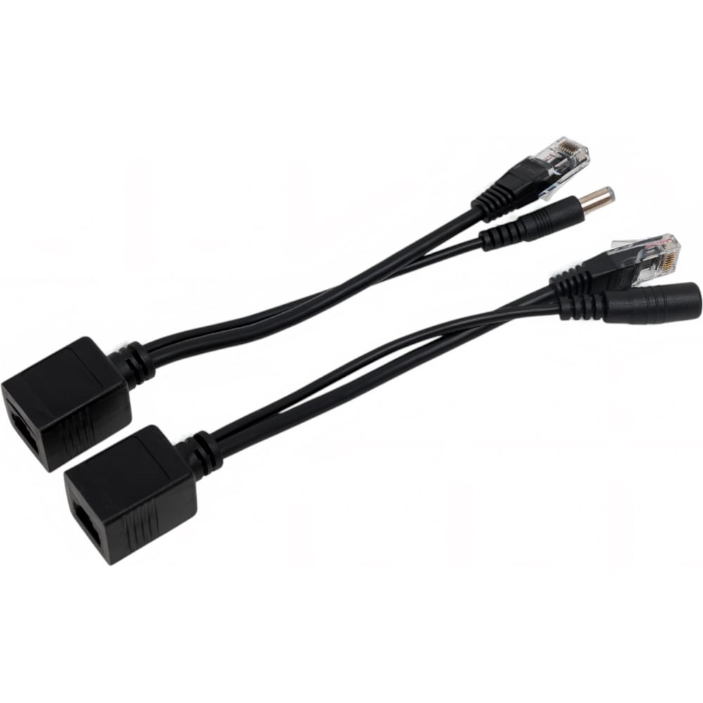 Пассивный комплект (инжектор + сплиттер) для передачи PoE по кабелю Cat 5e. Предназначен для питания оконечных сетевых устройств. Напряжение PoE - до 57V(конт. 4,5 (+), 7,8 (-)). Fast Ethernet. Инжектор: вх. - RJ45(FE, 10/100 Base-T)/роз.2.1*5.5мм(DC), вых. - RJ45(PoE). Сплиттер: вх. - RJ45(PoE), вых. - RJ45(FE, 10/100 Base-T)/штекер 2.1*5.5мм (DC). Цвет черный. Не требует питания. Размеры (ШхВхГ): 40x19x19мм + кабель 20см. Рабочая температура 0 ... +40°C.
