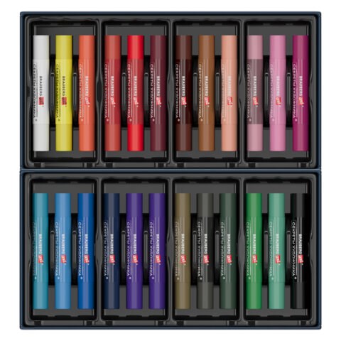 Масляная пастель легко ложится на различные фактуры цветной бумаги, бумагу для рисования, холст, картон, дерево, керамику. 36 цветов позволяют передать полную цветовую палитру. Высокое качество пигментов и связующего обеспечивает низкий расход материала, хорошую укрывистость и яркость цвета. Пастель имеет вид брусков с круглым сечением, обёрнутых в бумажную обёртку. Она позволяет сохранять руки и одежду чистыми. Не токсична и безопасна при использовании. Благодаря компактной упаковке удобно брать с собой.