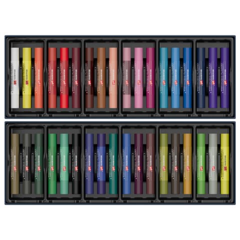 Масляная пастель легко ложится на различные фактуры цветной бумаги, бумагу для рисования, холст, картон, дерево, керамику. 36 цветов позволяют передать полную цветовую палитру. Высокое качество пигментов и связующего обеспечивает низкий расход материала, хорошую укрывистость и яркость цвета. Пастель имеет вид брусков с круглым сечением, обёрнутых в бумажную обёртку. Она позволяет сохранять руки и одежду чистыми. Не токсична и безопасна при использовании. Благодаря компактной упаковке удобно брать с собой.