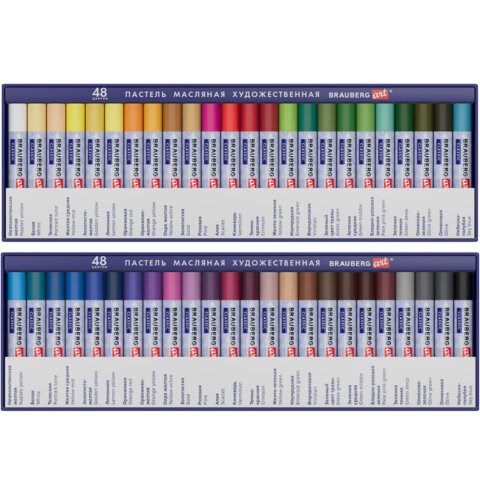 Пастель масляная художественная BRAUBERG ART CLASSIC, 48 цветов, круглое сечение, 182103