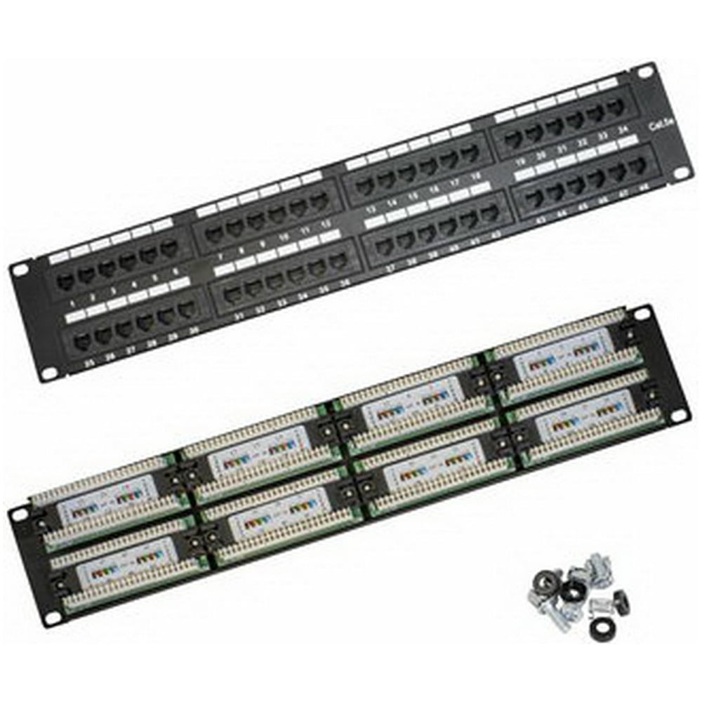 Патч-панель RUICHI RH-PP2U48U5E 113534 предназначена для коммутации активного сетевого оборудования с портами рабочих компьютеров (или другого оборудования), а также для использования в паре с другой патч-панелью (так называемое двойное представление портов), где первая представляет порты активного сетевого оборудования, а вторая – порты присоединяемых устройств (компьютеров, телефонов, сетевых принтеров и т.п.). Разъемы пронумерованы, имеют площадки для дополнительной маркировки. Контакты, расположенные на обратной стороне также имеют цифровую и цветовую маркировку.