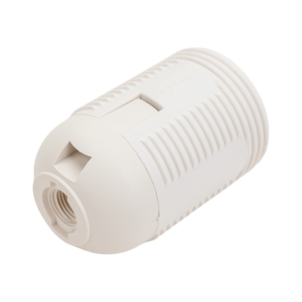 Патрон Е27 с резьбой. Используется для фиксации лампы внутри светильника и подведения к электрической сети. Корпус выполнен из термостойкого пластика. Цвет белый.