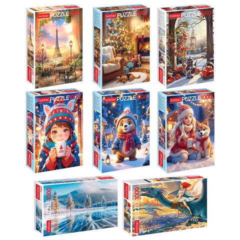 Пазл картонный 1000 элементов АССОРТИ, 10 дизайнов, 480х680 мм, HATBER