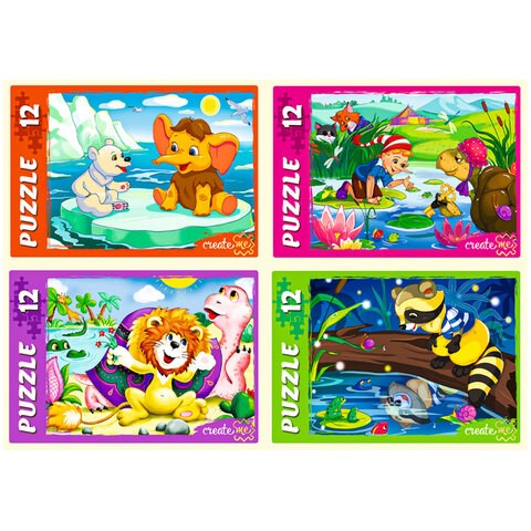 Пазлы картонные 12 элементов + 35 элементов, КОМПЛЕКТ 32 шт., поле 17,5х13 см, РК