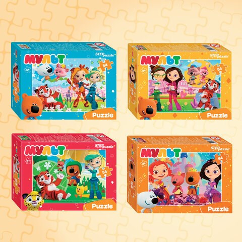 Комплект пазл состоит из 54 элементов, размер детали пазла – 2х1,8 см., изготовленных из экологически безопасного и не расслаивающегося картона. Предназначен для самых маленьких, отлично помогает в формировании мелкой моторики малыша. Дизайны созданы художниками-мультипликаторами. Сюжет и персонажи картинки яркие и интересные, хорошо прорисованные.