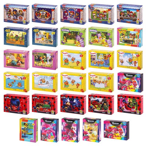 Комплект пазл состоит из 54 элементов, размер детали пазла – 2х1,8 см. Детали изготовлены из экологически безопасного и не расслаивающегося картона. Предназначен для самых маленьких, отлично помогает в формировании мелкой моторики ребёнка. Дизайны созданы художниками-мультипликаторами. Сюжет и персонажи картинки яркие и интересные, хорошо прорисованные.