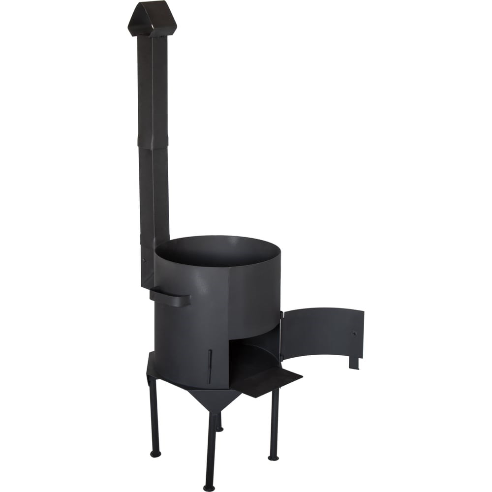 Печь для казана объемом 8 литров с дымоходом и дверцей. Эта надежная и удобная печь станет незаменимым помощником во время пикников, походов и других мероприятий на природе. Толщина стали 2 мм. Поверхность окрашена специальной термостойкой краской. Оснащена съемной трубой из двух частей с задвижкой шибером, с помощью которого удобно регулировать тягу. Также печь под казан имеет дверцу с замком, с помощью которой можно регулировать жар или просто закрывать печь. Данная модель печи имеет 4 съемные ножки, которые вставляются в специальные пазы. Удобные ручки для переноски. Одной из главных особенностей является ее универсальность. Съемные ножки и труба из двух частей очень удобны для транспортировки. Она идеально подходит для использования с чугунным казаном, что позволяет готовить разнообразные блюда на открытом огне. В ней можно использовать дрова и для углей. Рассчитана печка для казана объемом 8 литров, что позволяет готовить достаточное количество пищи для небольшой компании. Благодаря универсальности и высокому качеству, она станет вашим незаменимым помощником во время пикников, походов, рыбалки, охоты и других мероприятий на природе. Диаметр топки (см) - 33 Высота топки(см) - 32 Ширина дверцы (см) - 23 Высота дверцы (см) - 13 Высота топки с ножками(см) - 58 Высота трубы(см) - 70 Высота общая (см) - 128