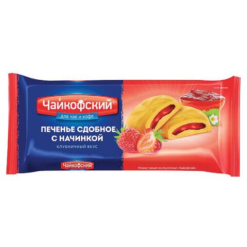 Печенье сдобное ЧАЙКОФСКИЙ с клубничной начинкой, 132 г