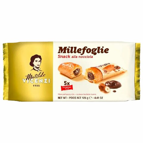 Печенье слоеное MATILDE VICENZI, трубочки с начинкой из фундука, 125 г, ИТАЛИЯ