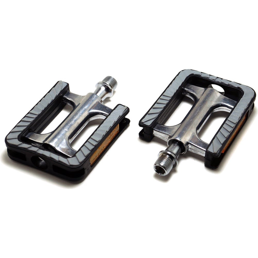 Педали Feimin FP-930, 104х73мм, база алюминий, нескользящее покрытие, стальная ось, промподшипники, комфорт, серебряные\черные H000014301