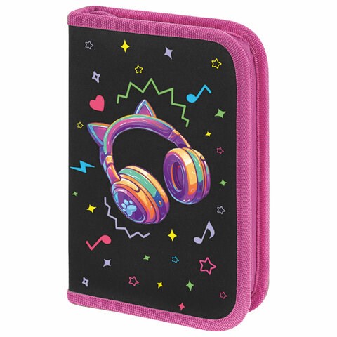Пенал BRAUBERG с наполнением, 1 отделение, 1 откидная планка, 24 предмета, 21х14 см, "Headphones", 273531