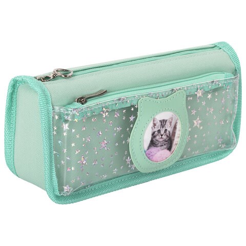 Пенал мягкий ЮНЛАНДИЯ, 2 отделения, полиэстер, "Kitty", мятный, 21х6х9 см, 270262
