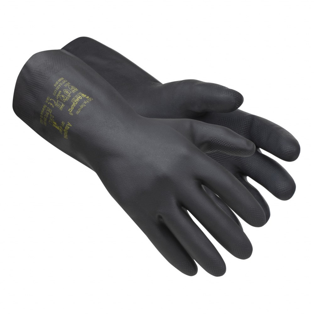 Перчатки из латекса предназначены защиты рук при контакте с растворами кислот, щелочами. Перчатки имеют внутреннее хлопковое напыление с антибактериальной пропиткой, что обеспечивает повышенный комфорт при длительном ношении. Стойкость к кислотам до 80% концентрации, стойкость к щелочам до 40% концентрации , герметичность. Срок хранения 54 месяца,Материал основы перчатки натуральный латекс,Манжета прямая,Толщина перчатки 0,68 +/- 0,02 мм,Длина перчатки 330 мм,Защитные свойства (маркировка) К80, Щ40, Вн, EN 388-2121X, EN 374 (AJKNLPT), Класс риска 2 класс