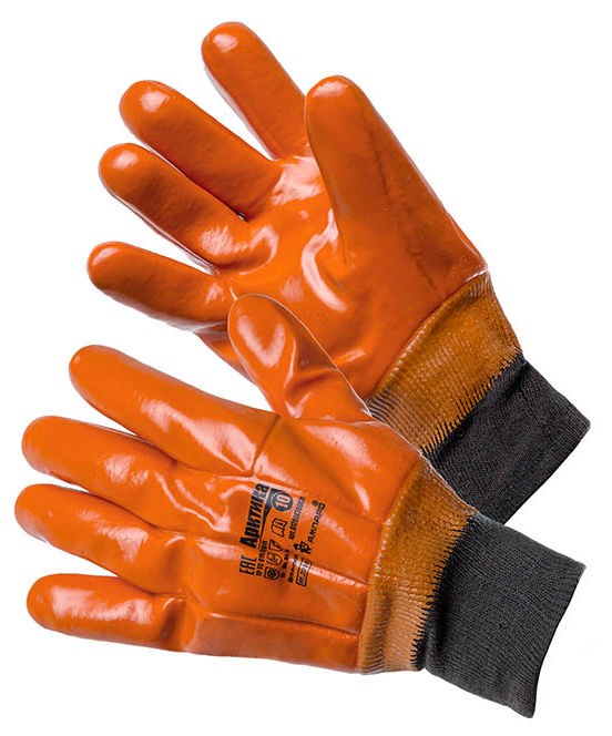 Утепленные прочные перчатки с ПВХ покрытием для защиты от механических воздействий и химических факторов.