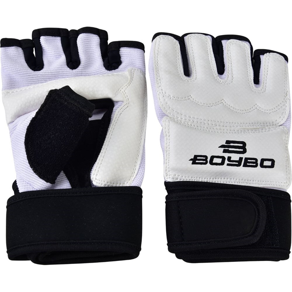 Перчатки предназначены для занятий тхэквондо и другими видами единоборств. Изготовлены из полиуретана последнего поколения. Композитный литой вкладыш из пены высокого давления обеспечивает однородный уровень поглощения удара, что гарантирует идеальную защиту руки. Перчатки имеют открытые пальцы и ладонь. Внутренний материал обладает антиаллергенными и антискользящими свойствами и моментально испаряет жидкость с внутренней поверхности перчаток. Перчатки прочно фиксируются на запястье широкой манжетой на липучке.