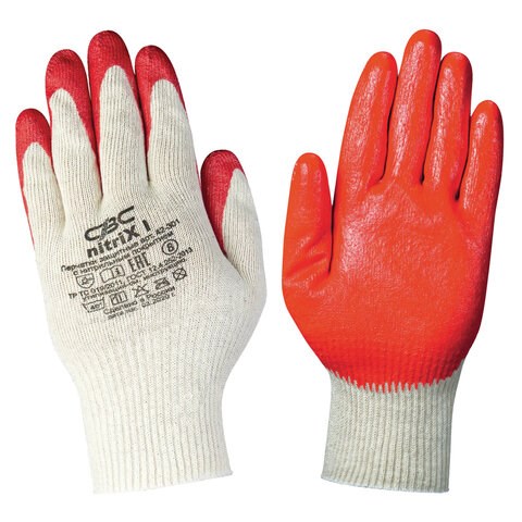 Перчатки х/б НИТРИКС маслобензостойкие 1пара, 13 класс, 34-36г размер 8, покрытие - облив вспененный НИТРИЛ, повышенная износостойкость, СВС, 42-301 бел/крас