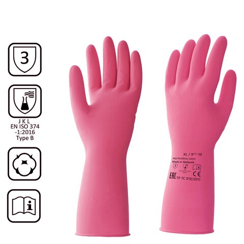 Перчатки латексные КЩС, сверхпрочные, плотные, хлопковое напыление, размер 9,5-10, XL (очень большой), красные, HQ Profiline,73588