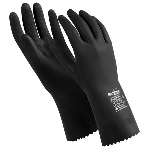 Перчатки латексные MANIPULA "КЩС-2", ультратонкие, размер 9-9,5, L (большой), черные, L-U-032/CG-943