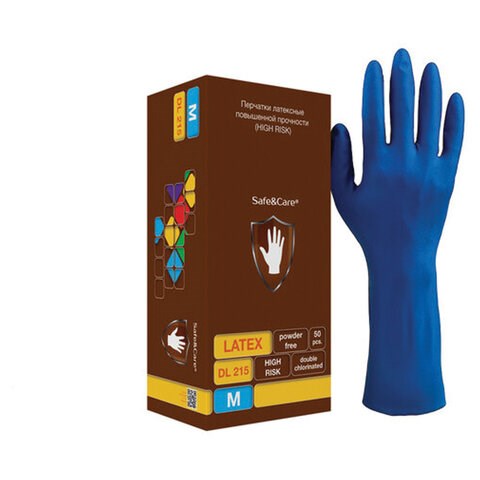 Перчатки латексные смотровые 25 пар (50 штук), размер 7-8, M (средний), повышенной прочности, SAFE&CARE High Risk DL215