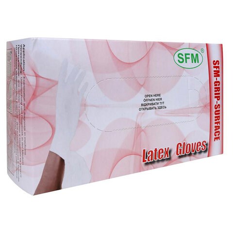 Перчатки латексные смотровые SFM Grip-Surface/ L 254 SC, Германия, 50 пар (100 штук), размер 7-8, М (средний)