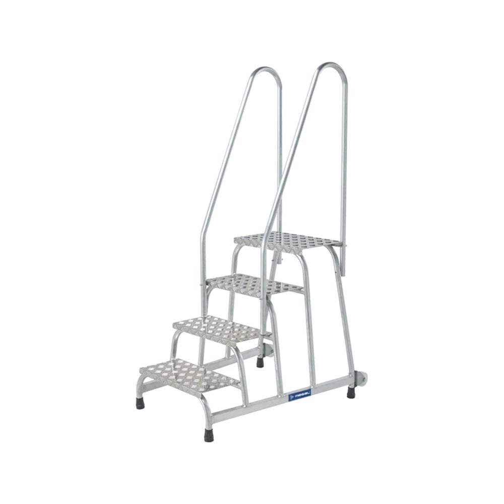 Передвижная монтажная подставка MEGAL (тип 1) 4 ступени с двумя поручнями 050704 применяется при проведении строительных и монтажных работ на небольшой высоте. Верхняя площадка размером 31х51 см позволяет комфортно разместиться. Ступени глубиной 25 см, выполненные из рифленого листового алюминия, обеспечивают безопасный и удобный подъем/спуск. Ножки подставки укомплектованы резиновыми противоскользящими башмаками, что гарантирует устойчивость на поверхности. Для удобства перемещения по рабочей территории модель оснащена комплектом колес.