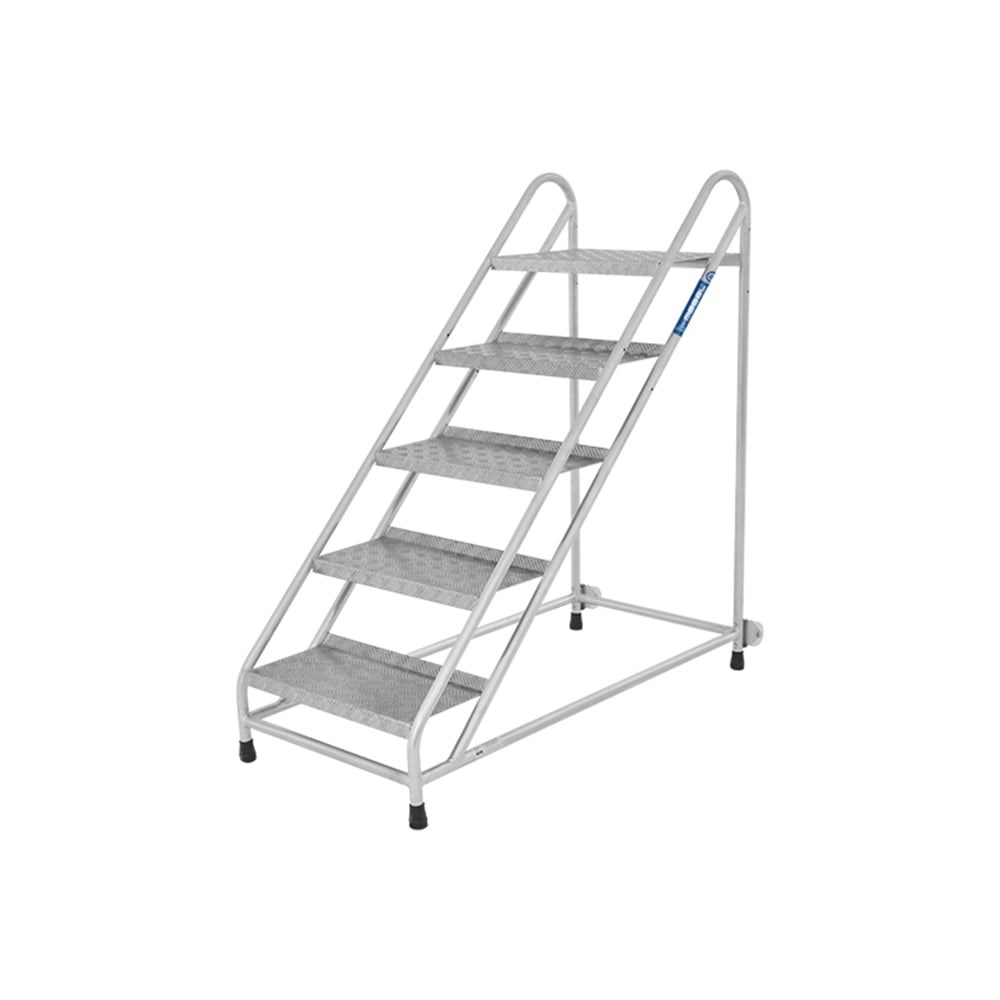 Передвижная монтажная подставка MEGAL (тип 2) 5 ступеней 051005 применяется при проведении строительных и монтажных работ на небольшой высоте. Верхняя площадка размером 60х40 см позволяет комфортно разместиться. Ступени глубиной 29 см, выполненные из рифленого листового алюминия, имеют загнутую внутреннюю кромку, которая предотвращает проскальзывание ноги внутрь. А дополнительное боковое ограждение предотвращает соскальзывание ноги вбок. Ножки подставки укомплектованы резиновыми противоскользящими башмаками, что гарантирует устойчивость на поверхности. Для удобства перемещения по рабочей территории модель оснащена комплектом колес.