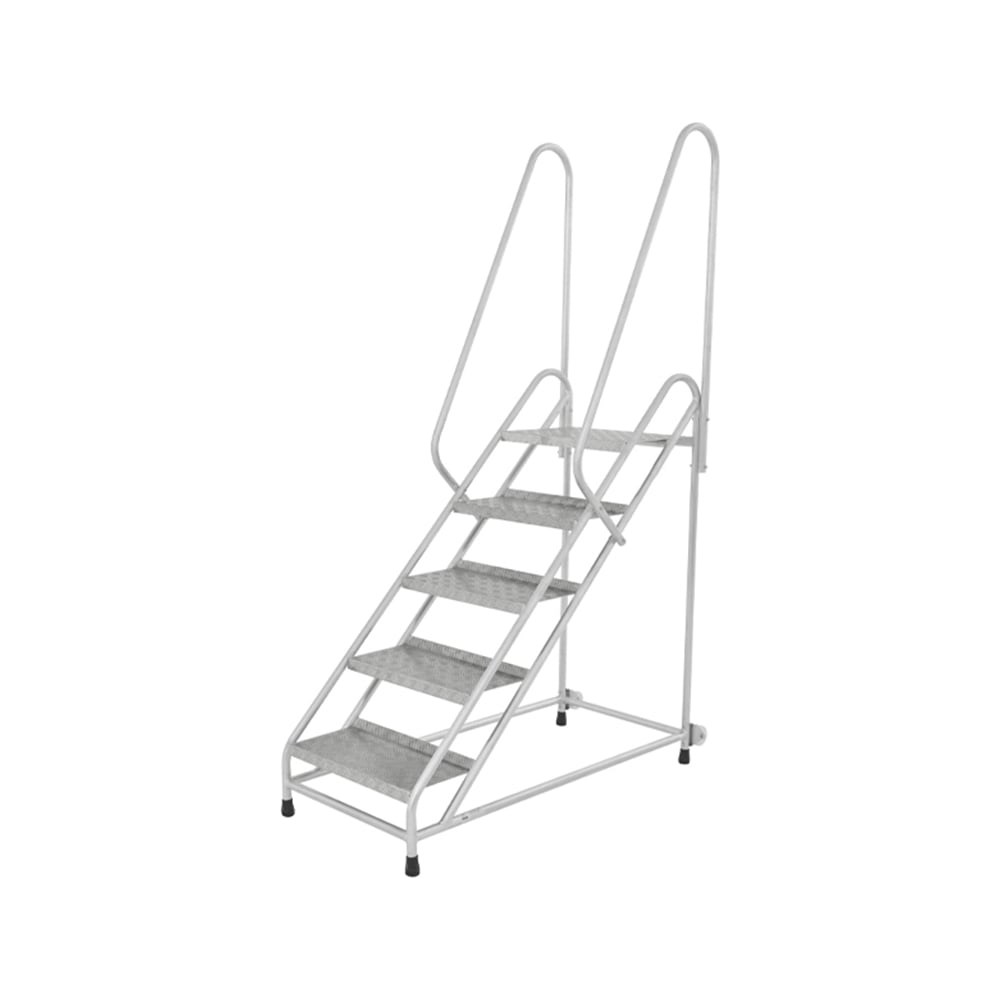 Передвижная монтажная подставка с двумя поручнями MEGAL (тип 2) 5 ступеней 051205 применяется при проведении строительных и монтажных работ на небольшой высоте. Верхняя площадка размером 60х40 см позволяет комфортно разместиться. Ступени глубиной 29 см, выполненные из рифленого листового алюминия, имеют загнутую внутреннюю кромку, которая предотвращает проскальзывание ноги внутрь. А дополнительное боковое ограждение предотвращает соскальзывание ноги вбок. Ножки подставки укомплектованы резиновыми противоскользящими башмаками, что гарантирует устойчивость на поверхности. Для удобства перемещения по рабочей территории модель оснащена комплектом колес.