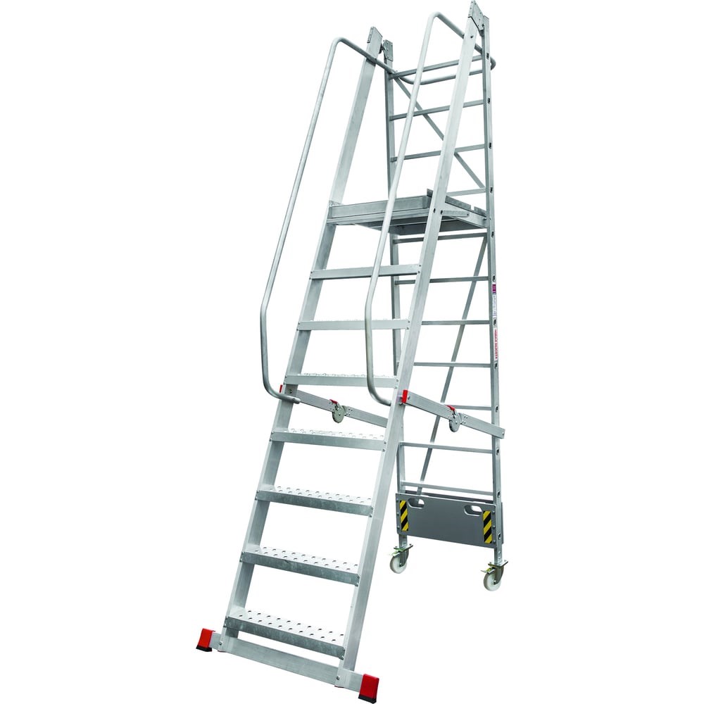 Передвижная складная лестница с площадкой Новая Высота 8 ступеней 3540108 подходит для различных работ на высоте. Удобна в передвижении по объекту и в хранении благодаря складывающейся конструкции и роликам диаметром 125 мм. Стальные ступени глубиной 110 мм для комфортного подъема и спуска. Рабочая площадка огорожена с трёх сторон для длительной и безопасной работы.