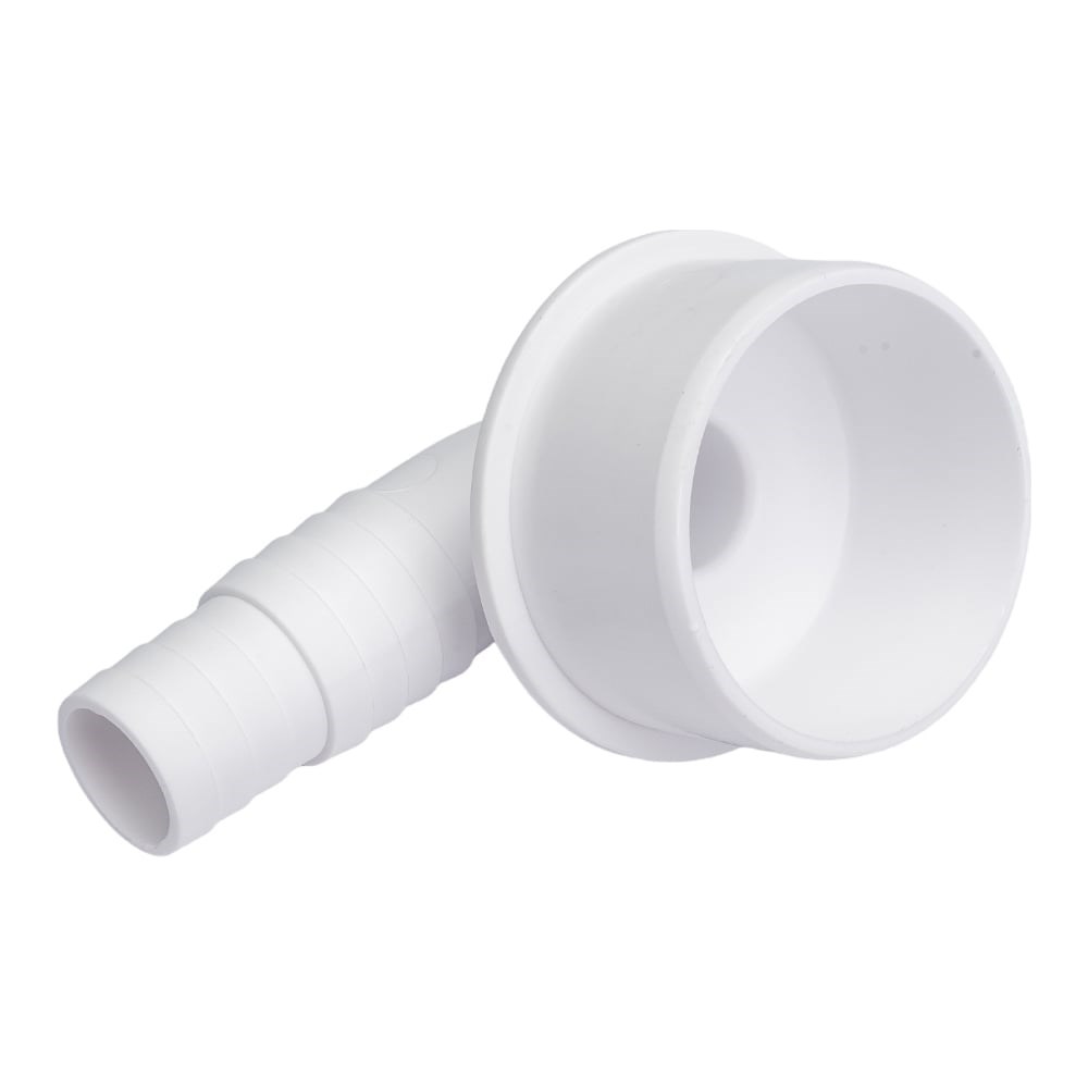 Переходник угол для подключения сливного шланга стиральной или посудомоечной машины СУПРИМПЛАСТ 90 градусов, 20x23x50, белый 4P_20235090_02 помогает присоединить сливной шланг к фитингу внутренней канализации, что обеспечивает слив воды из бытовой техники.