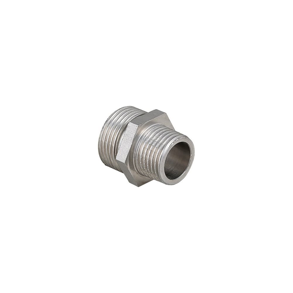 Переходной ниппель 1х3/4 нар.-нар. Valtec VTr.580.N.0605 - латунный соединительный элемент с антикоррозийным никелевым покрытием. Изделие имеет два выхода разных размеров для резьбового соединения различных элементов трубопровода в системе водоснабжения, отопления или технологического назначения.