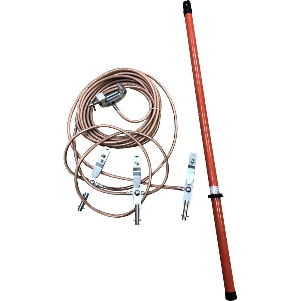 Переносное заземление Диэлектрик ЗПЛ-10 Д Д157664 предназначено для защиты персонала при работе на отключенных участках воздушных линий электропередачи номинальным напряжением до 10 кВ включительно. Заземление состоит из: провода с жилой из медных проволок в прозрачной полиуретановой или ПВХ изоляции, сохраняющей эластичные свойства и не разрушающейся при температуре от -55 до +60 град.С; 3-х пружинных зажимов из оцинкованной стали для закрепления их на проводах и струбцины для присоединения к заземляющим проводникам; Одной штанги типа ШЗП-10/15Д. Сечение заземляющего провода 25кв.мм. Длина заземляющего спуска 10 метров. Длина провода между фазами 1,6 метра.