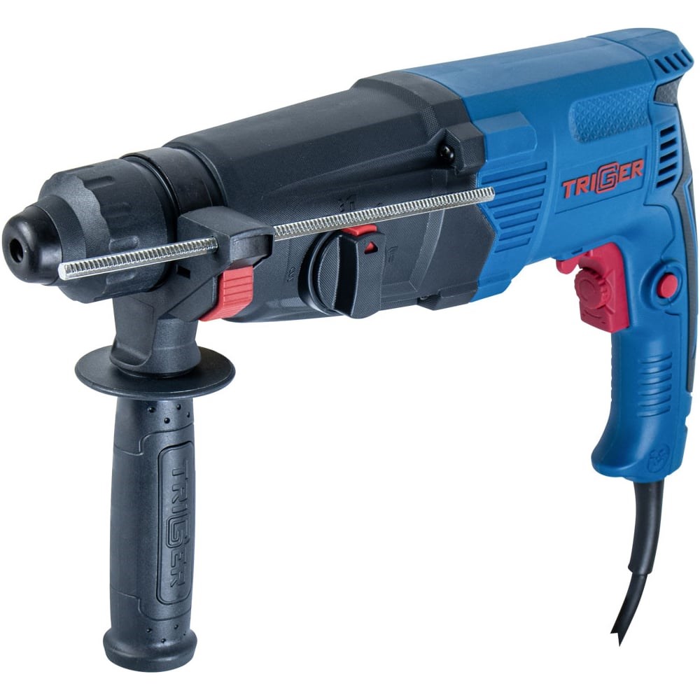 Перфоратор ТРИГГЕР 20028 тов-202800 представляет собой компактную модель, которая применяется для бурения отверстий и отбойных работ. Модель оснащена тремя режимами работы: сверление, сверление с ударом, долбление. Функция щеточного реверса позволяет легко извлечь застрявший бур. Предохранительная муфта защищает пользователя во время заклинивания оснастки. Патрон SDS-plus обеспечивает быструю замену оснастки без вспомогательных инструментов, сокращая время простоев.