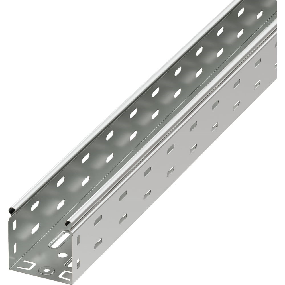 Перфорированные листовые лотки ДКС применяются для прокладки кабеля как в помещении, так и на открытом воздухе. Лотки отличаются высокой несущей способностью – подформовка, производимая при производстве этой продукции, создает дополнительное ребро жесткости, что увеличивает несущую способность системы до 54%. Перфорация сокращает вес конструкции. В лотках имеются отверстия для отвода кабеля диаметром 11 мм, 17 мм, 21 мм. Степень пыле- и влагозащиты перфорированных лотков – IP 10 при использовании крышек, входящих в состав системы. Метод соединения "мама-папа" применяемый для системы, существенно сокращает время монтажа и создает непрерывный контур. Конструктив листовых лотков ДКС предупреждает повреждение кабеля при прокладке. Толщина стали – 0,7 мм, высота лотка – 80 мм, ширина – 80 мм, длина – 2000 мм. Перфорированные лотки в исполнении "Цинк-ламель" имеют специальное покрытие, устойчивое к коррозии из химически активной магниевой смолы с добавлением хлопьев цинка и алюминия. Цинк-ламельное покрытие изделий ДКС по коррозионной устойчивости аналогично покрытию "Горячий цинк". Оно обеспечивает электрохимическую и барьерную защиту от коррозии.